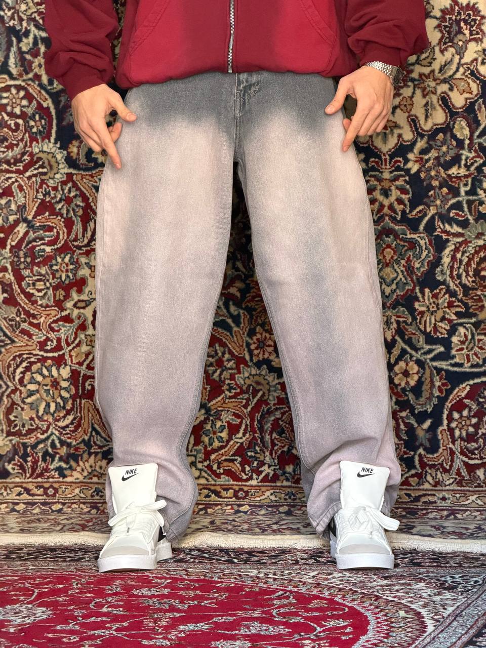 شلوار بگ بالونی طوسی تینت صورتی کد ۶۰۴۴
