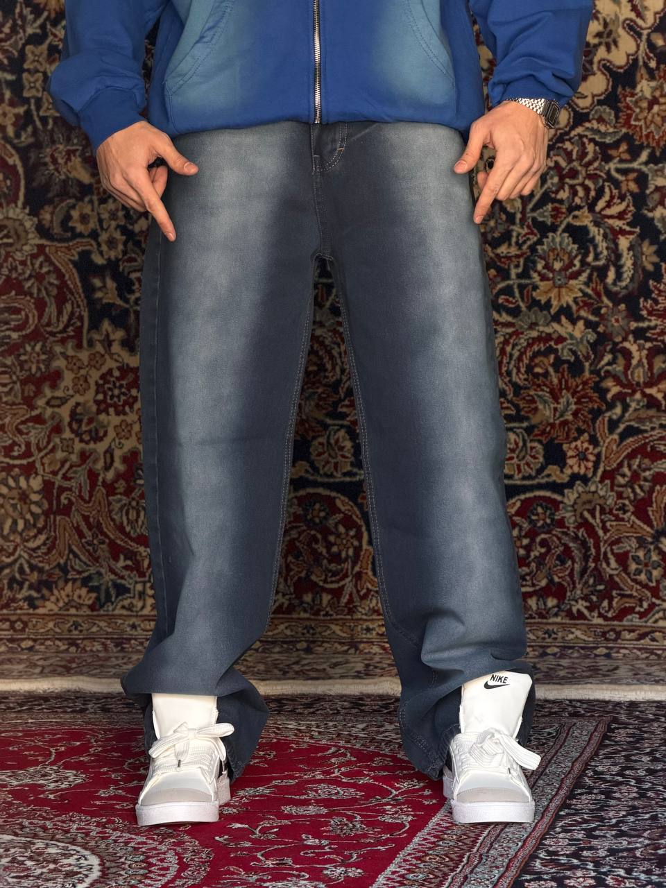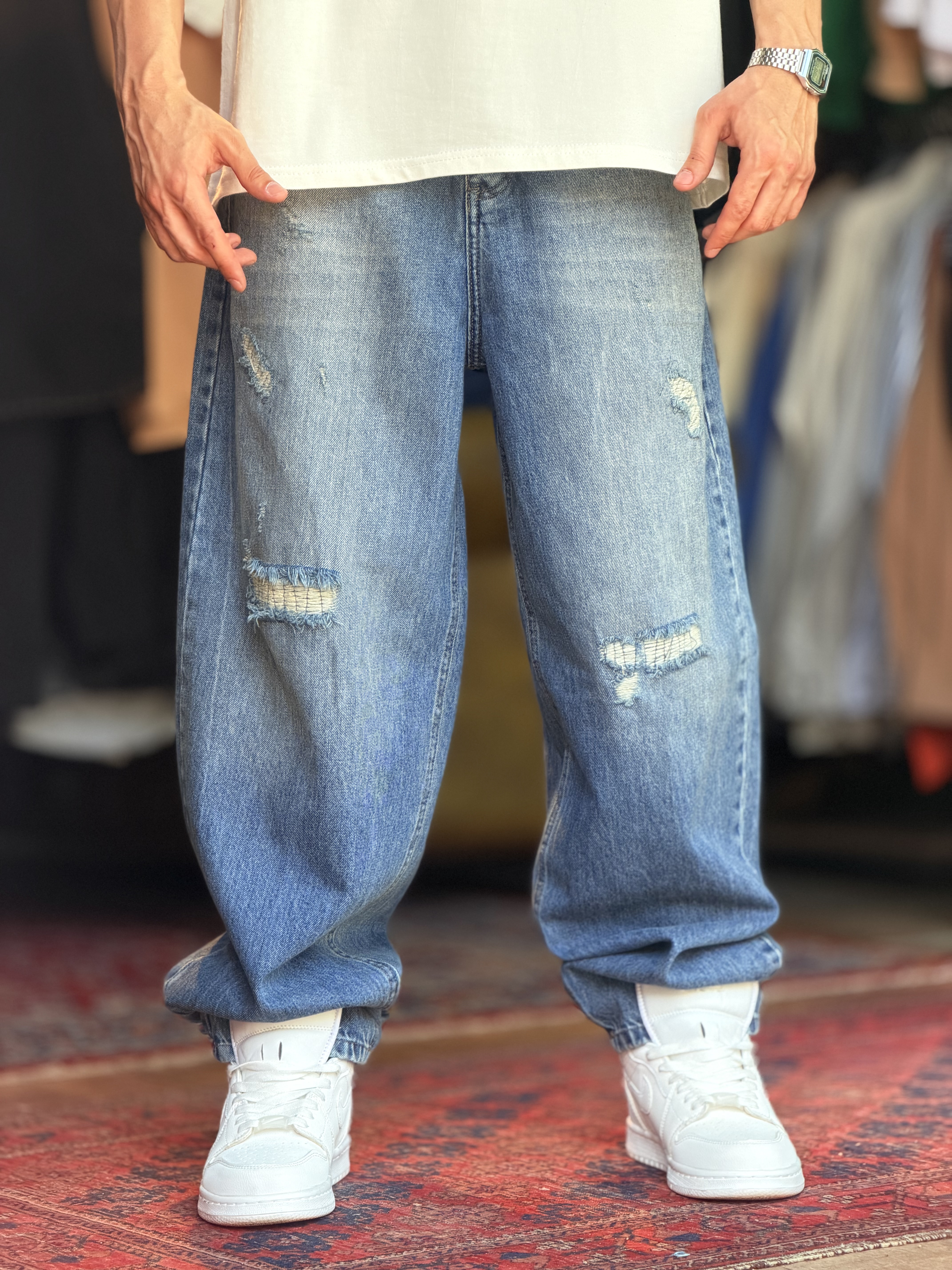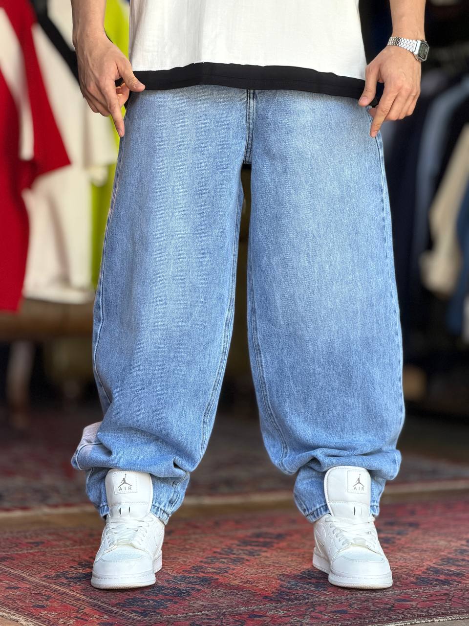 شلوار بگ آبی تینت سفید کد ۶۰۳۱