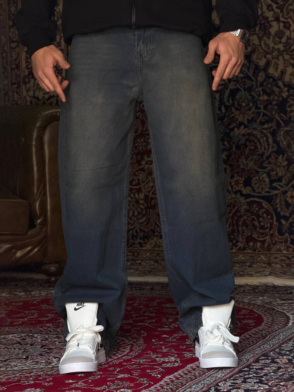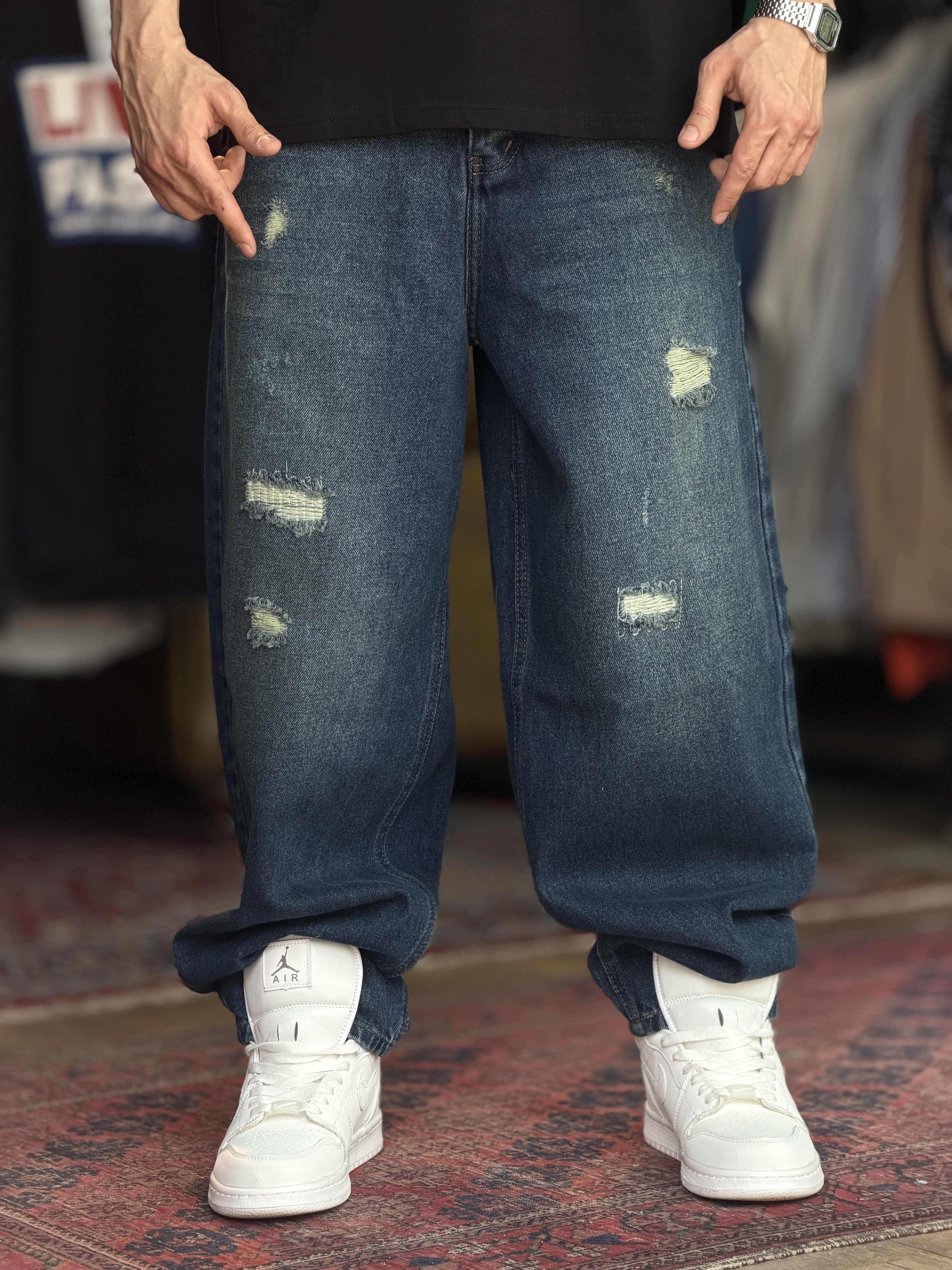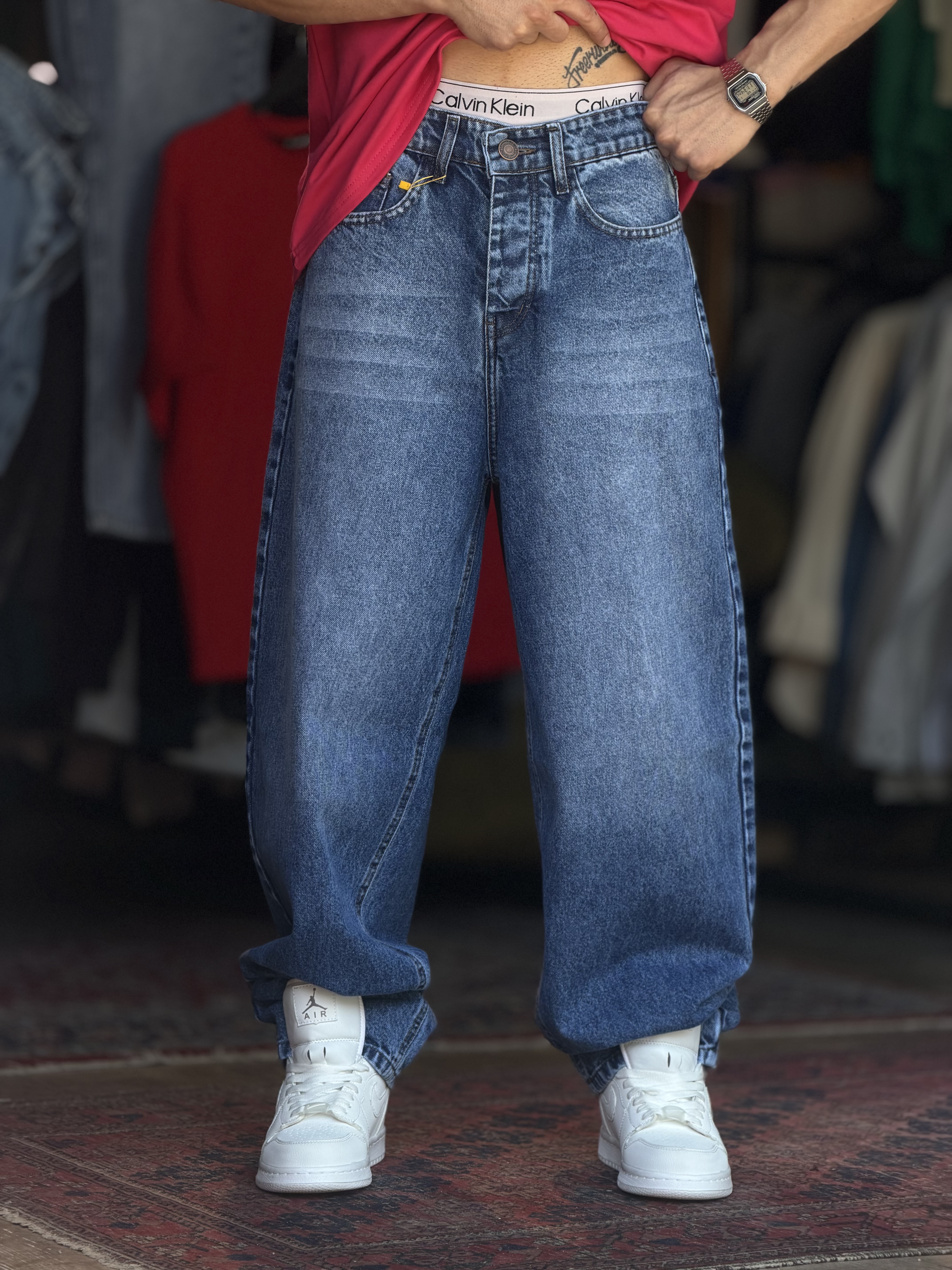 شلوار بگ آبی تینت سفید کد ۶۰۳۱