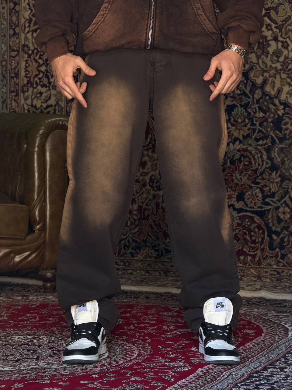 شلوار بگ بالونی قهوه ای تینت خاکی کد ۷۱۴۱