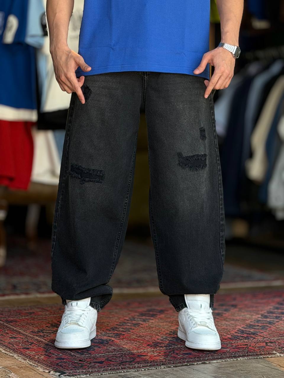 ناموجودشلوار بالونی مشکی زانو زاپ کد