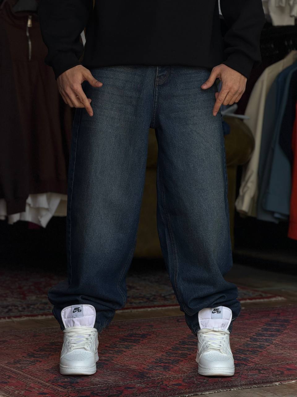 ناموجودشلوار بگ بالونی آبی تیره زاپدار کد ۷۱۱۴