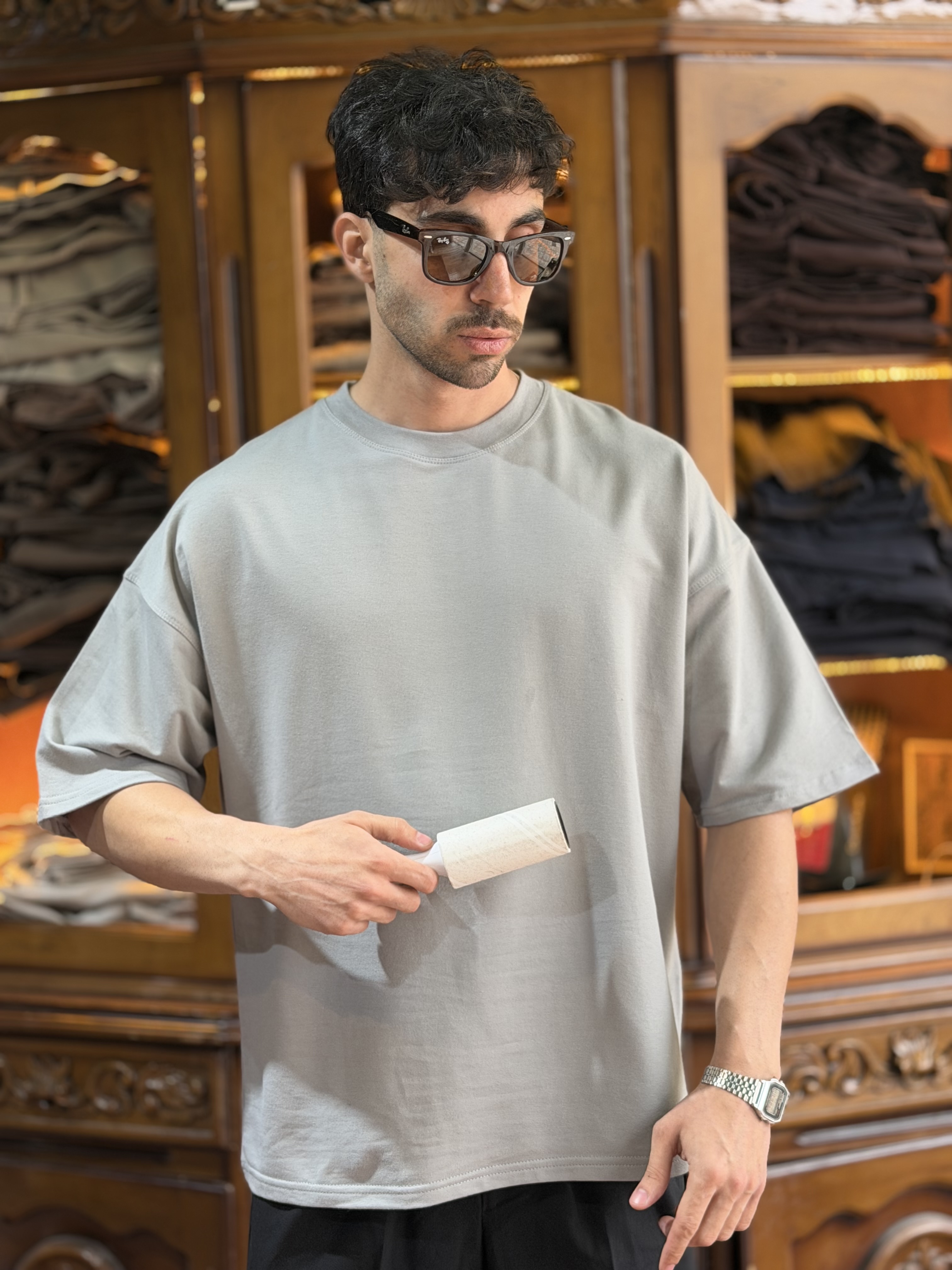 تیشرت باکسی بیسیک طوسی تیره