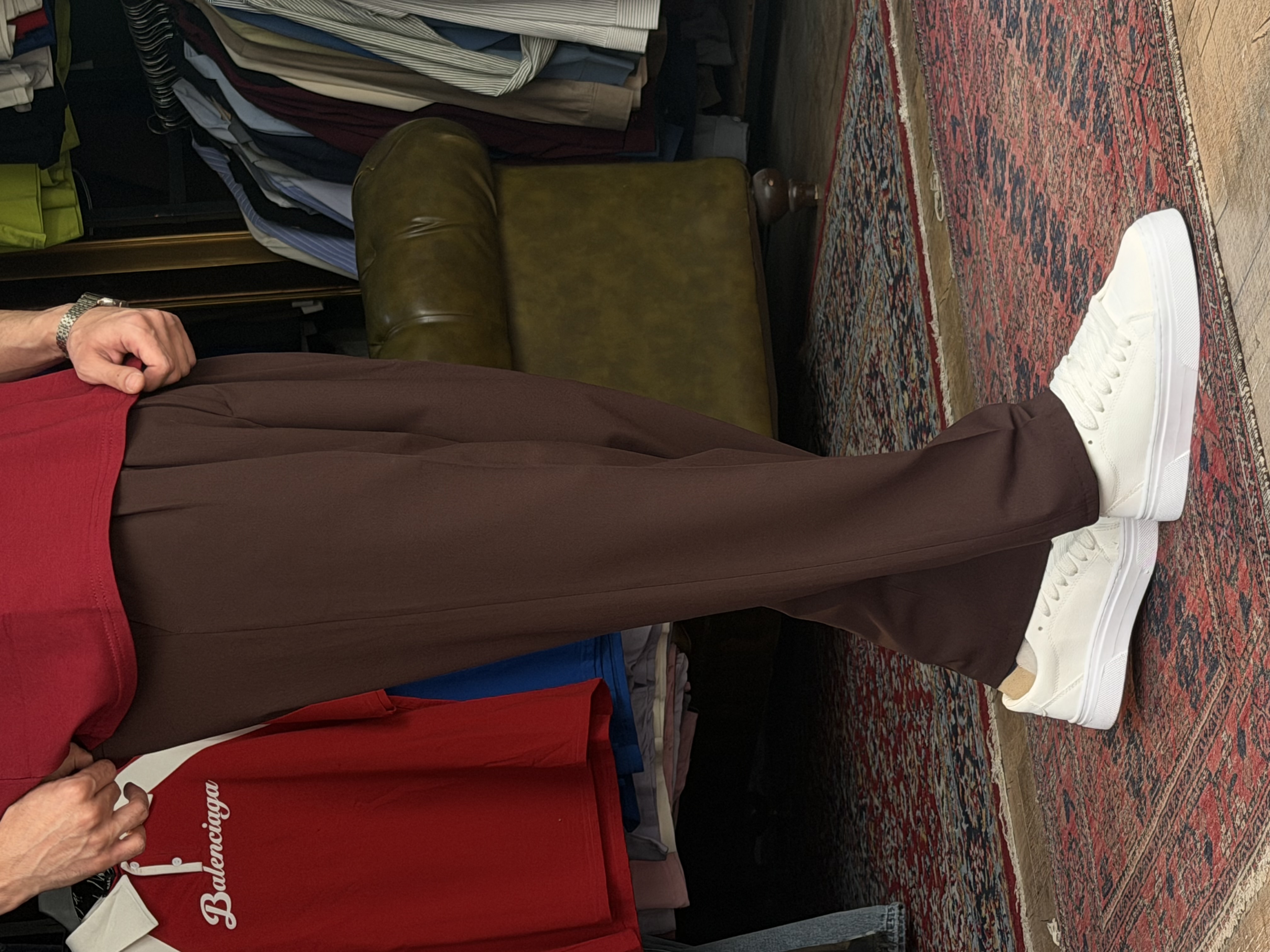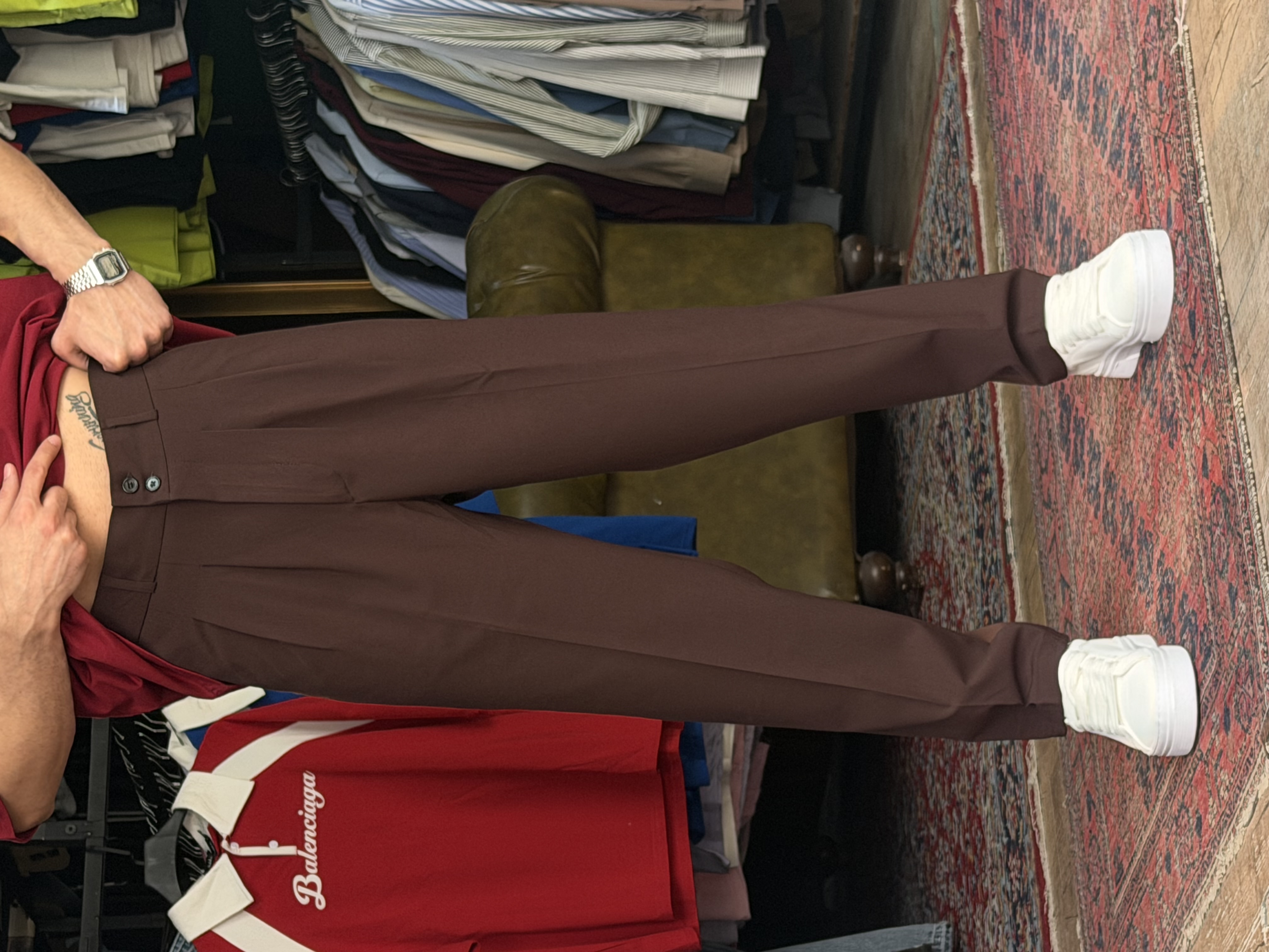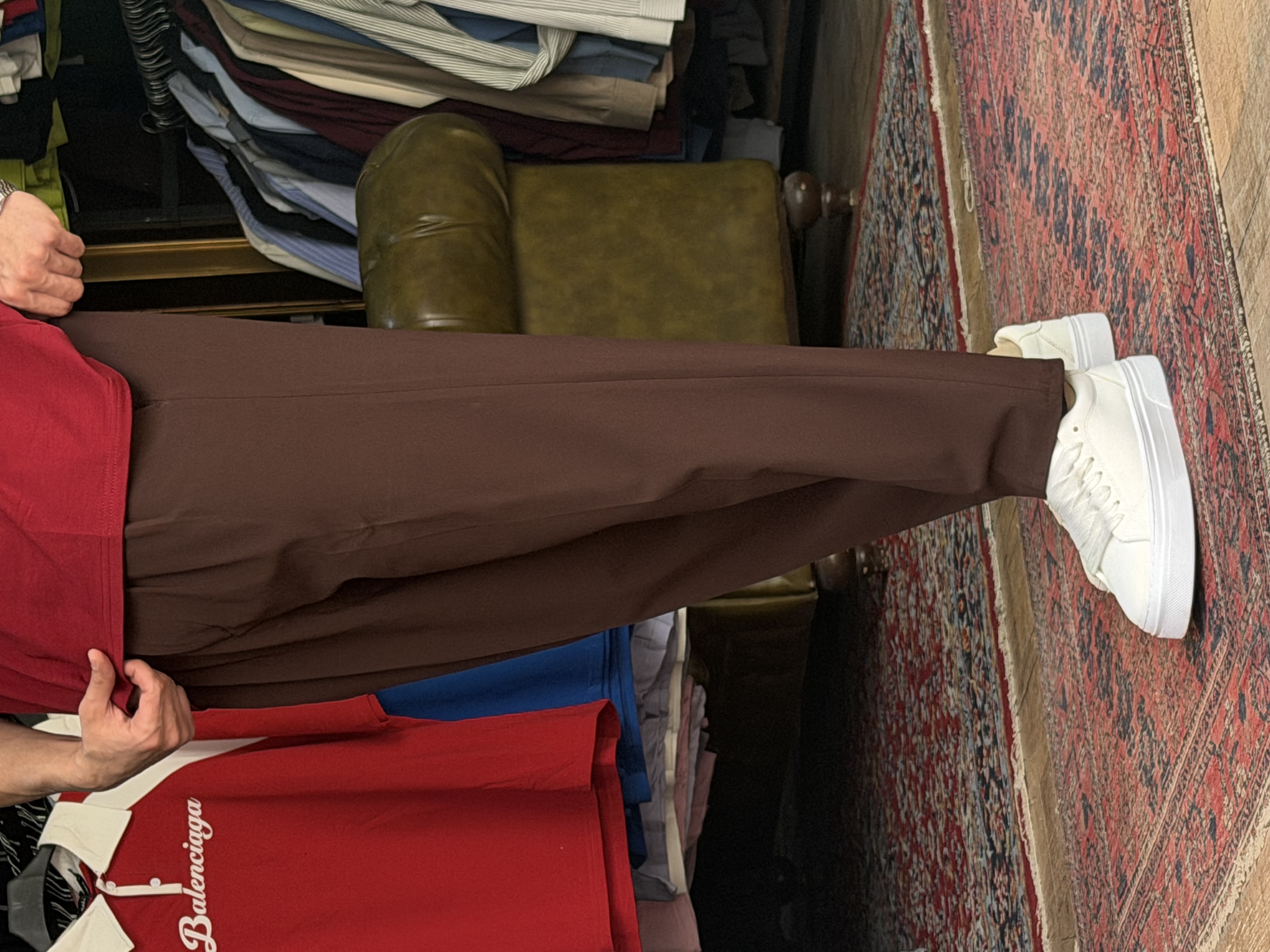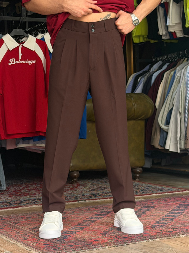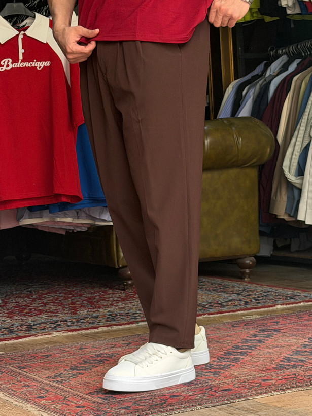 شلوار مام فیت پارچه ای دارچینی