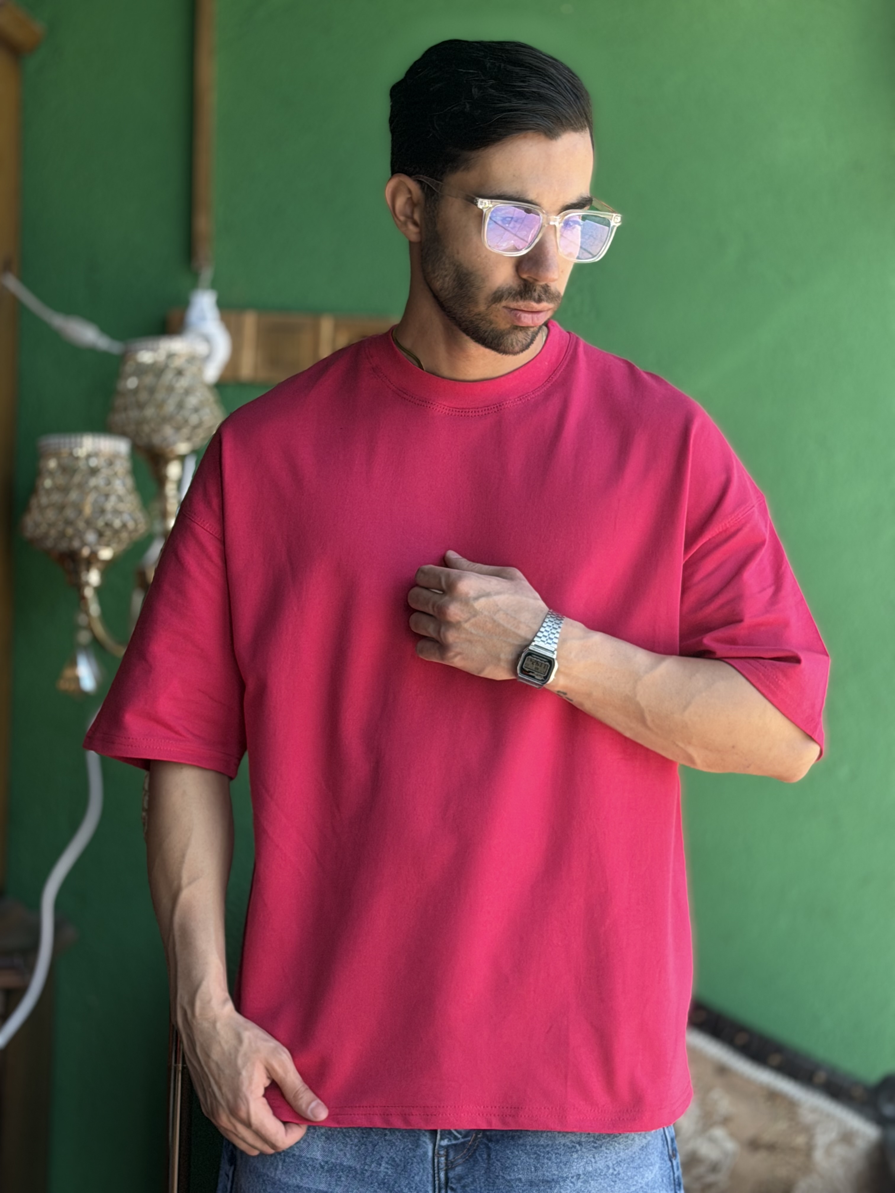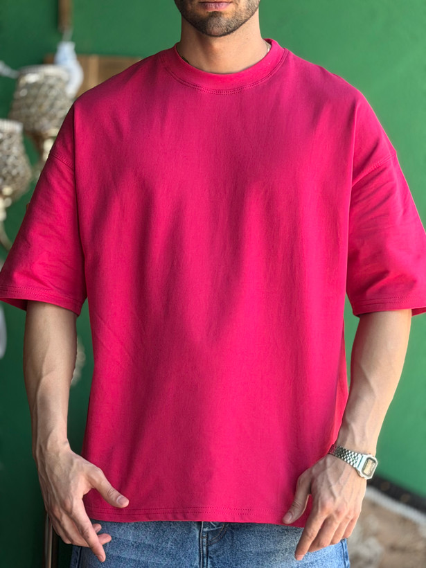 تیشرت بیسیک باکسی صورتی