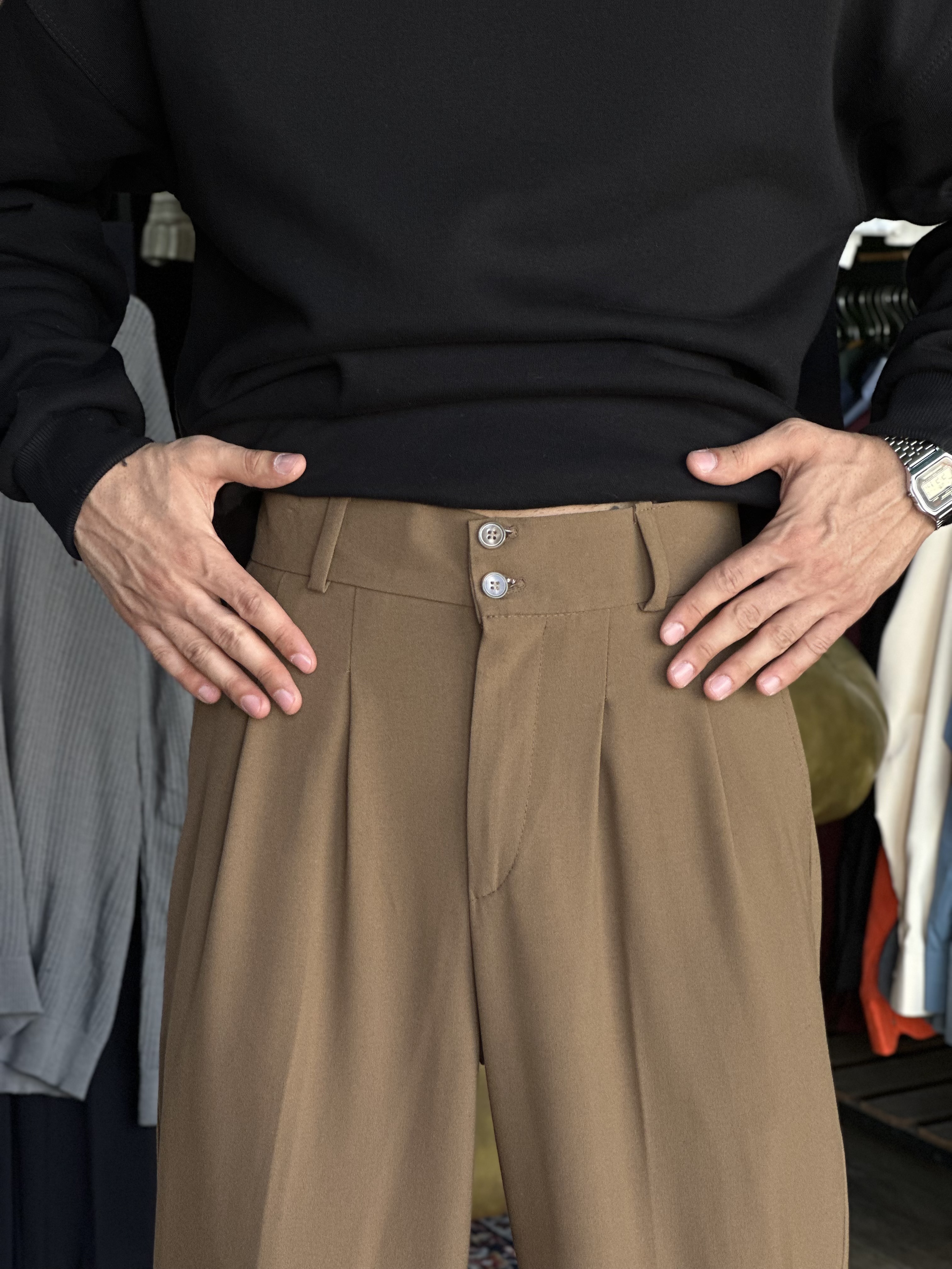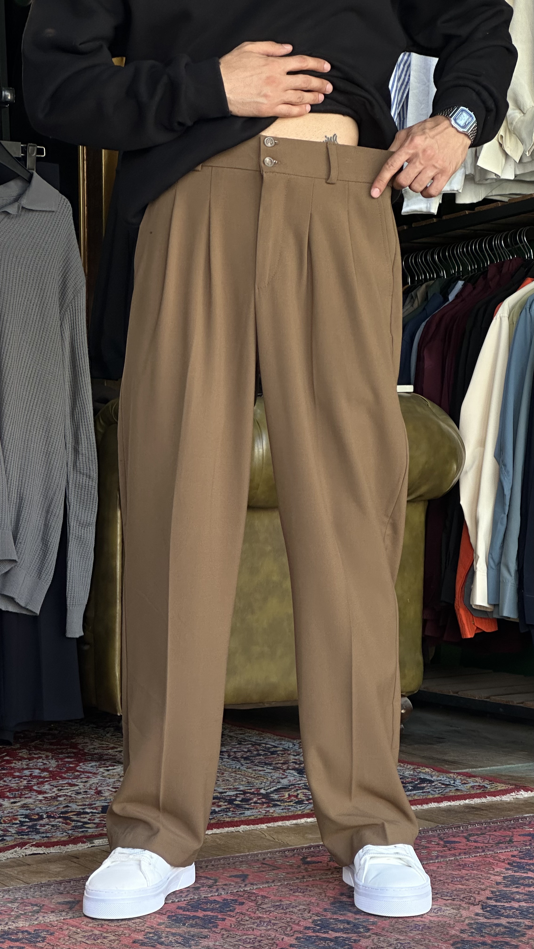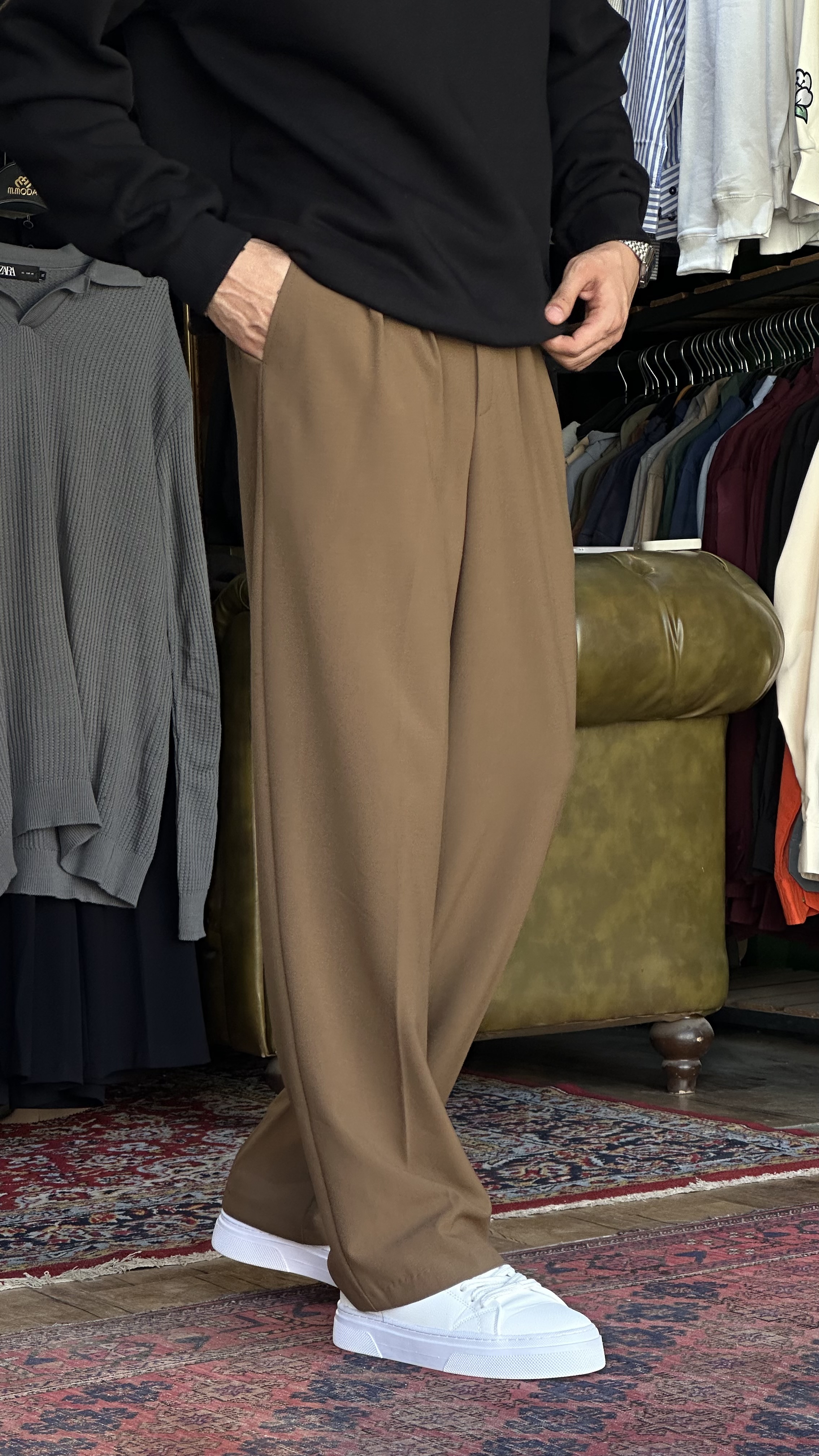 شلوار بگ پارچه ای موکا